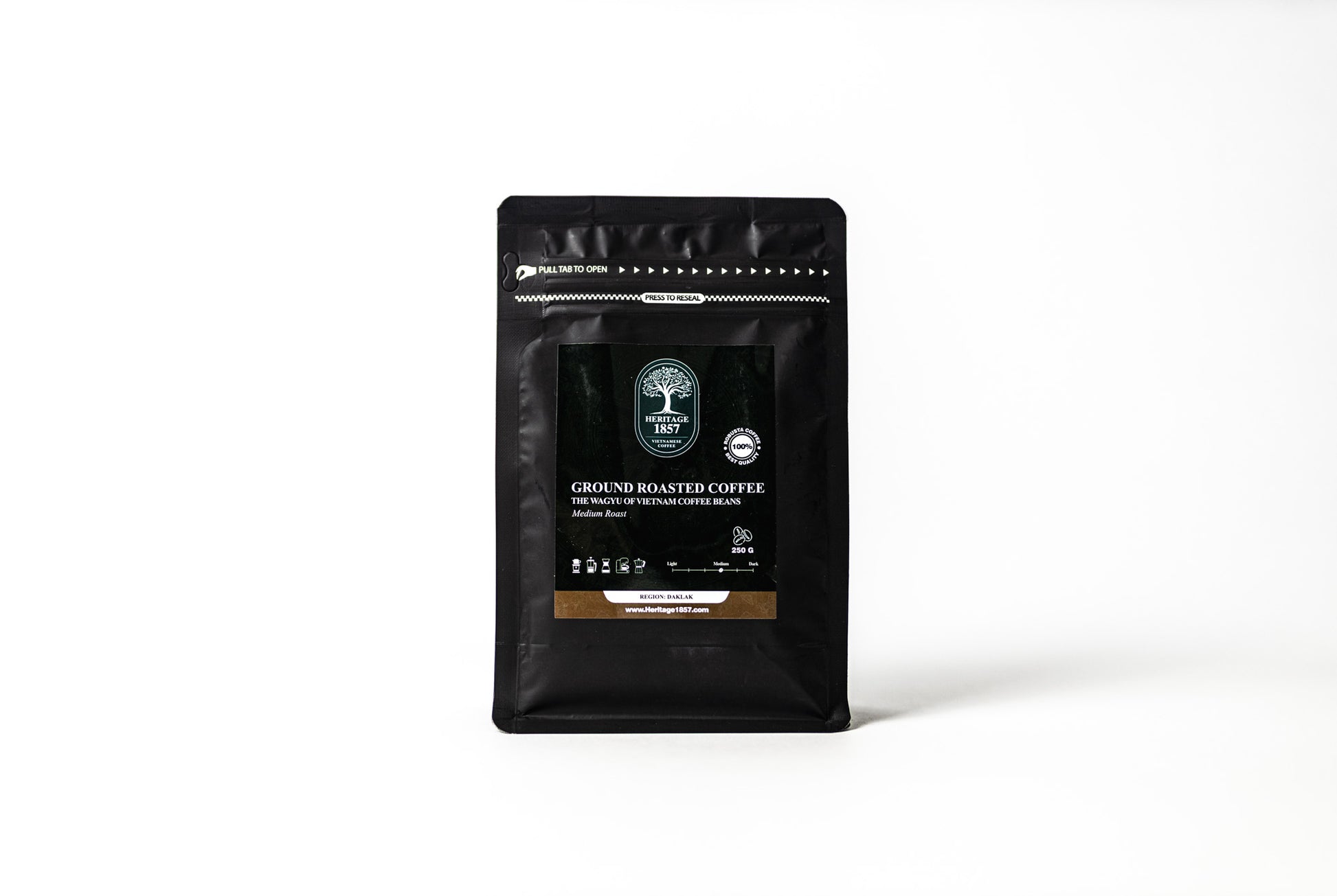Our medium roast offers a balanced flavor with an initial sharpness of citrus or spice, transitioning to a rich chocolate aftertaste with bittersweet cocoa notes. Made from 100% Vietnamese Robusta beans.