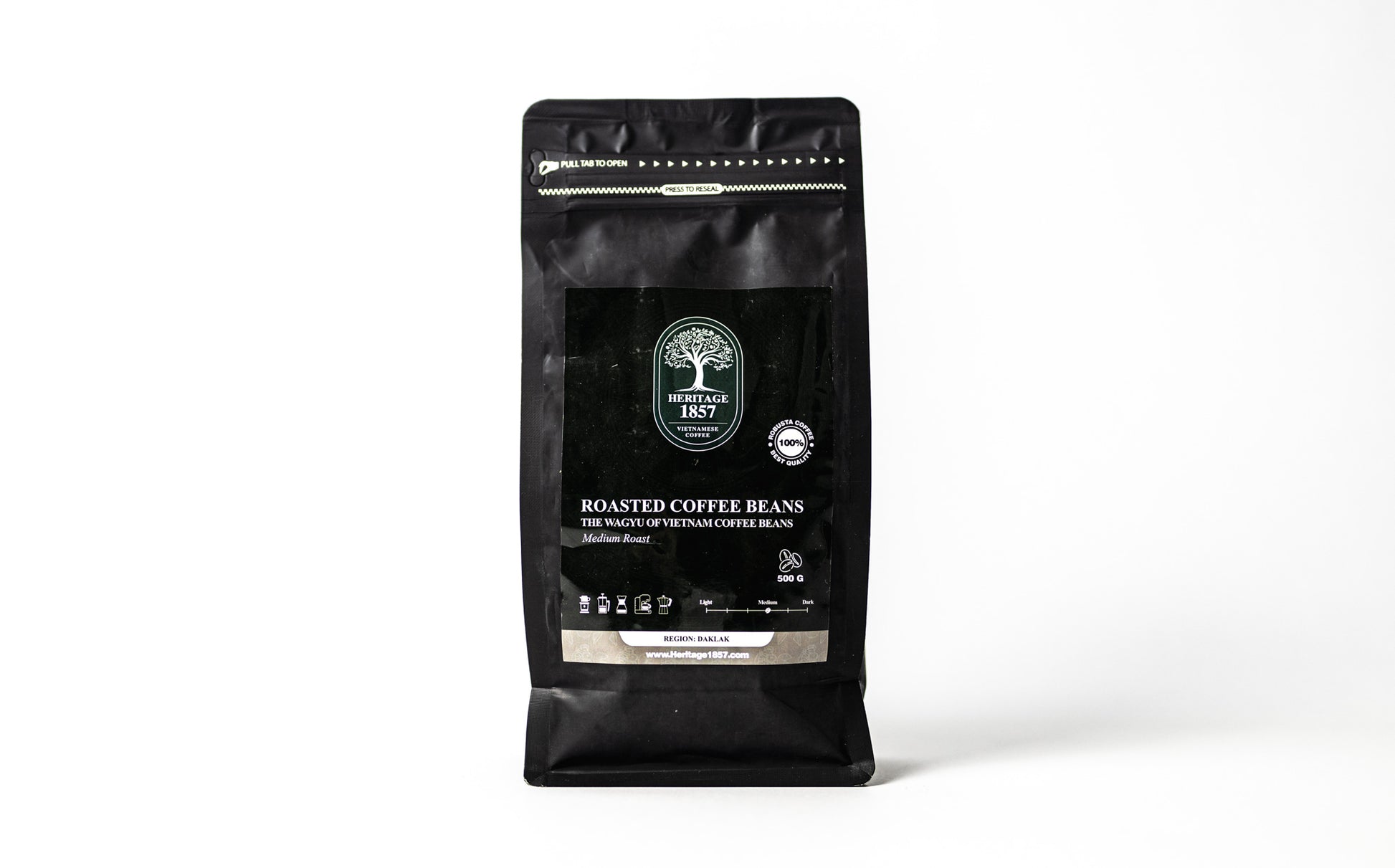 Our medium roast offers a balanced flavor with an initial sharpness of citrus or spice, transitioning to a rich chocolate aftertaste with bittersweet cocoa notes. Made from 100% Vietnamese Robusta beans.